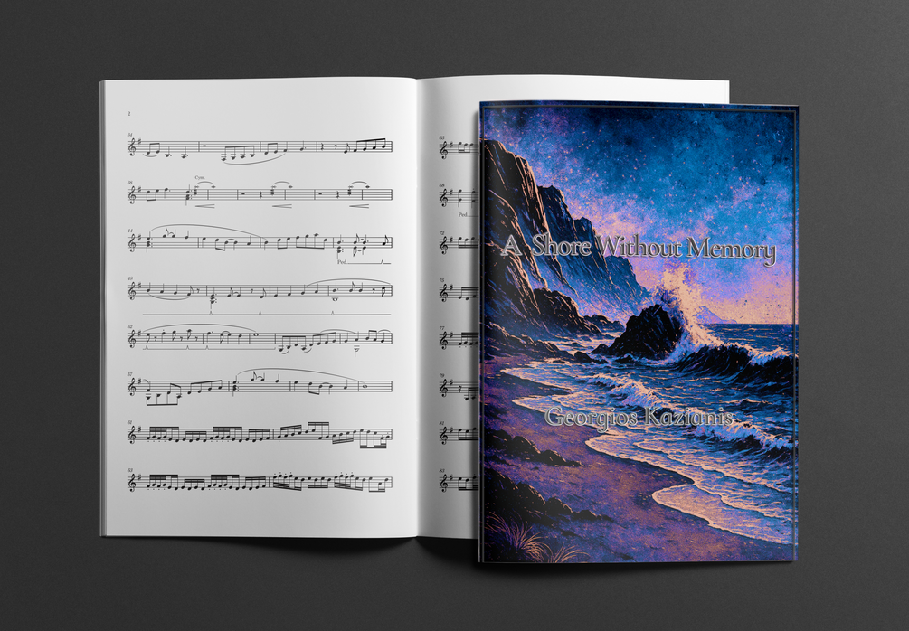 A Shore Without Memory evokes the silent vastness of a coastline suspended in dream. Time stretches across still water; fragments of recollection wash ashore and recede before they can settle. Scored for solo acoustic guitar with suspended cymbal, the work unfolds as a slow meditation on resonance, decay, and absence. The guitar voice—sparse, luminous, and lyrical—emerges from waves of natural harmonics, static pedal tones, and isolated gestures. Like memory itself, its architecture is delicate, unstable, and always vanishing.
